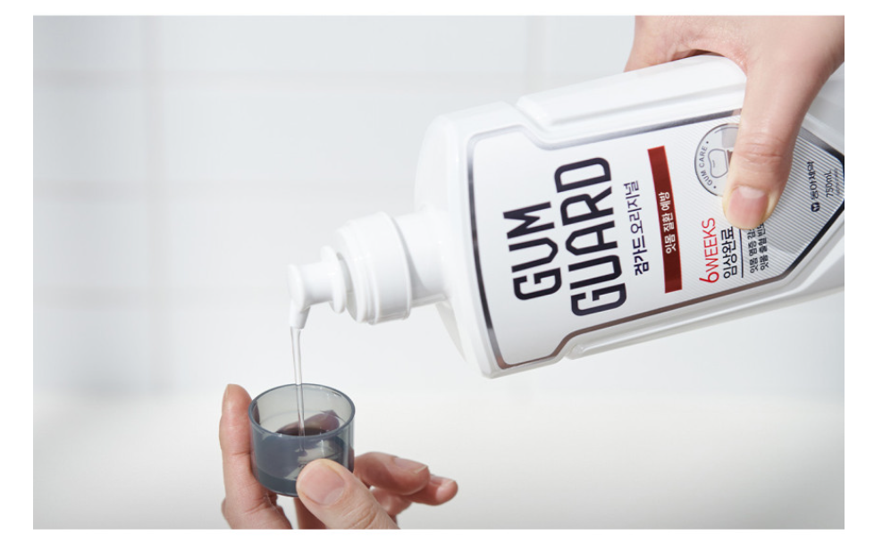 참고로 보편적으로 많이 사용하는 가그린의 경우에는 일상적인 구강 관리 목적에 집중해있지만, 검가드 오리지널은 잇몸 건강 관리 목적에 집중해서 생산된 것으로 잇몸질환 치주염의 예방 효과까지 갖춰진 제품입니다.