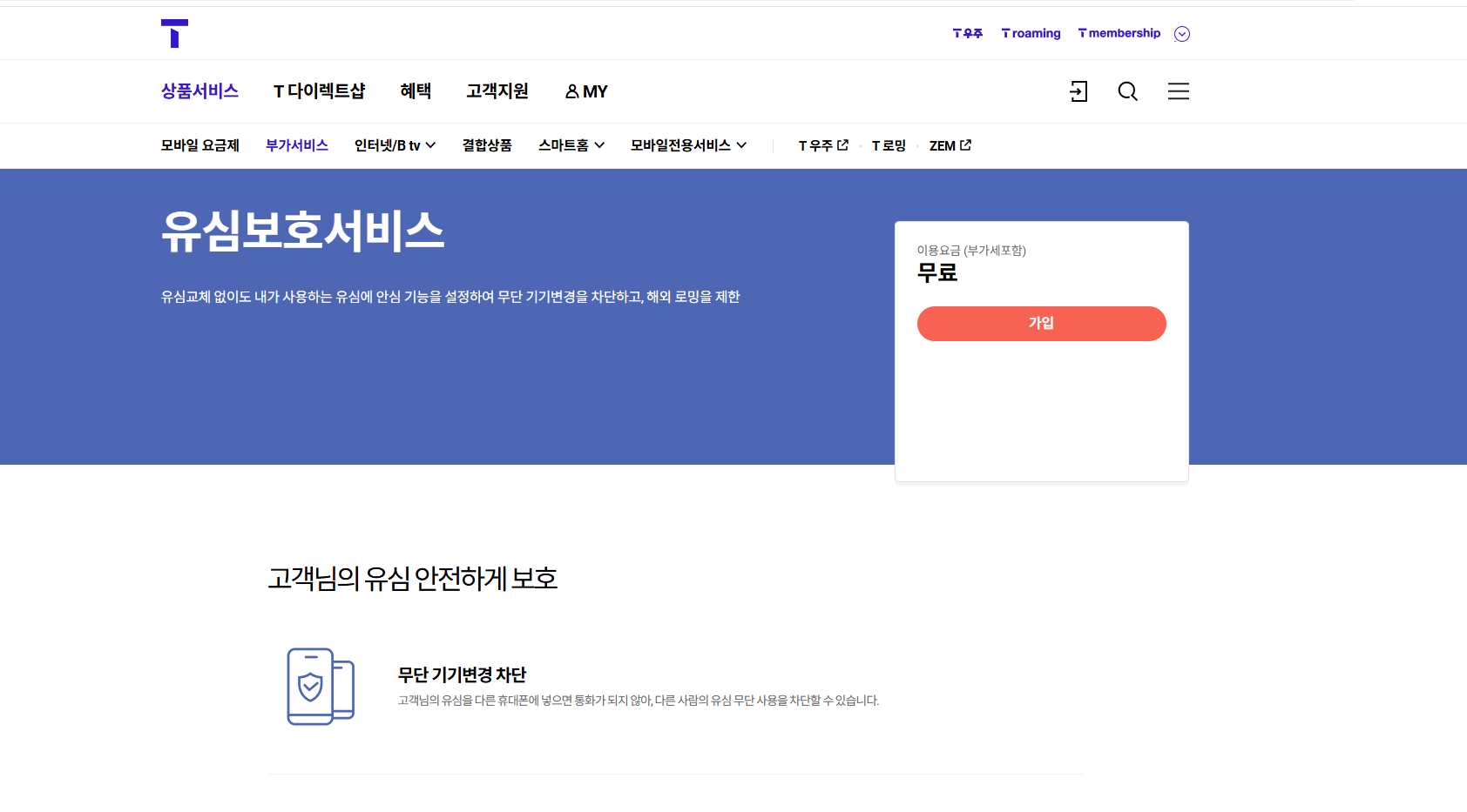 - 유심 보호 서비스 가입: 회선 자동 차단 기능