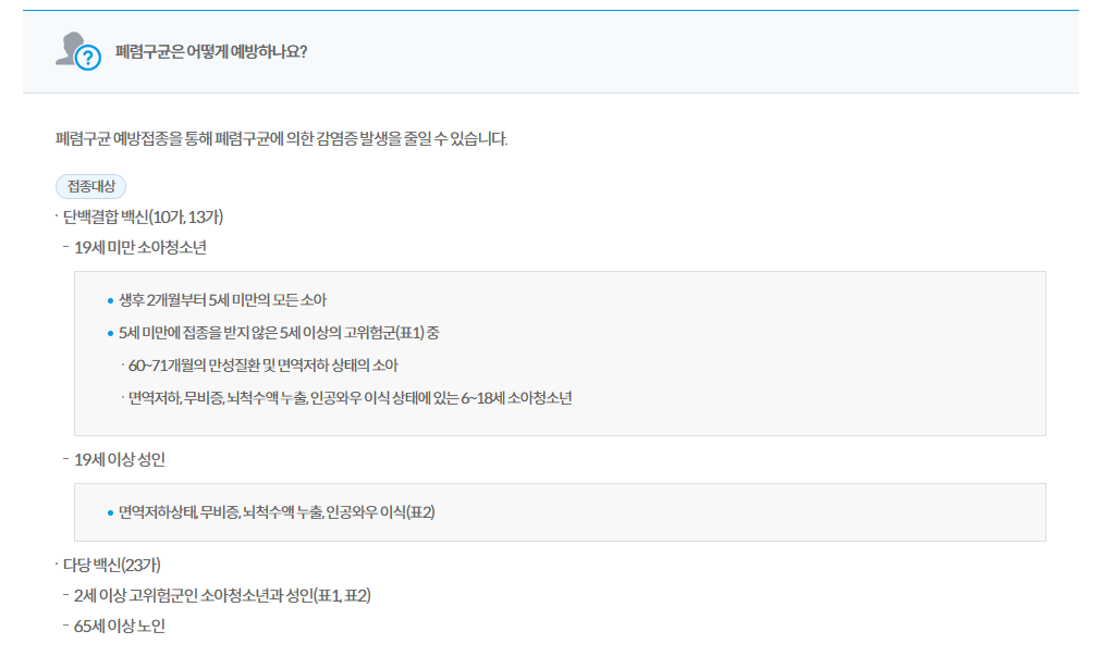 현재 폐렴구균에 치명적일 수 있는 나이대를 대상으로 무료 접종을 시행하고 있는데요.