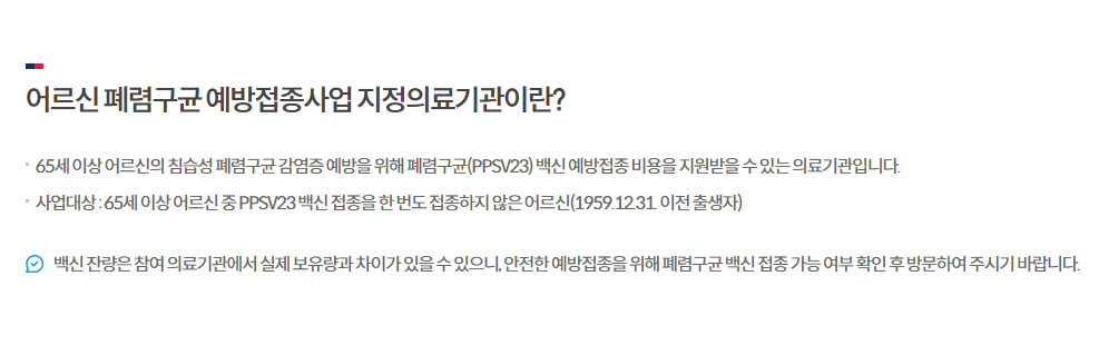 자신이 폐렴구균 감염증 예방을 위해 지원받을 수 있는 무료 대상자인지, 예방 접종을 진행하고 있는 병원이 어디있는지는 아래 남겨드리는 링크를 통해 조회하실 수 있습니다.