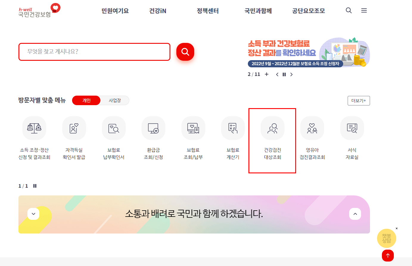 어떤 종류로 나눠지든간에 자신이 건강검진 대상자인지, 검진을 실시하고 있는 병원인지 찾아보는 방법은 동일합니다.