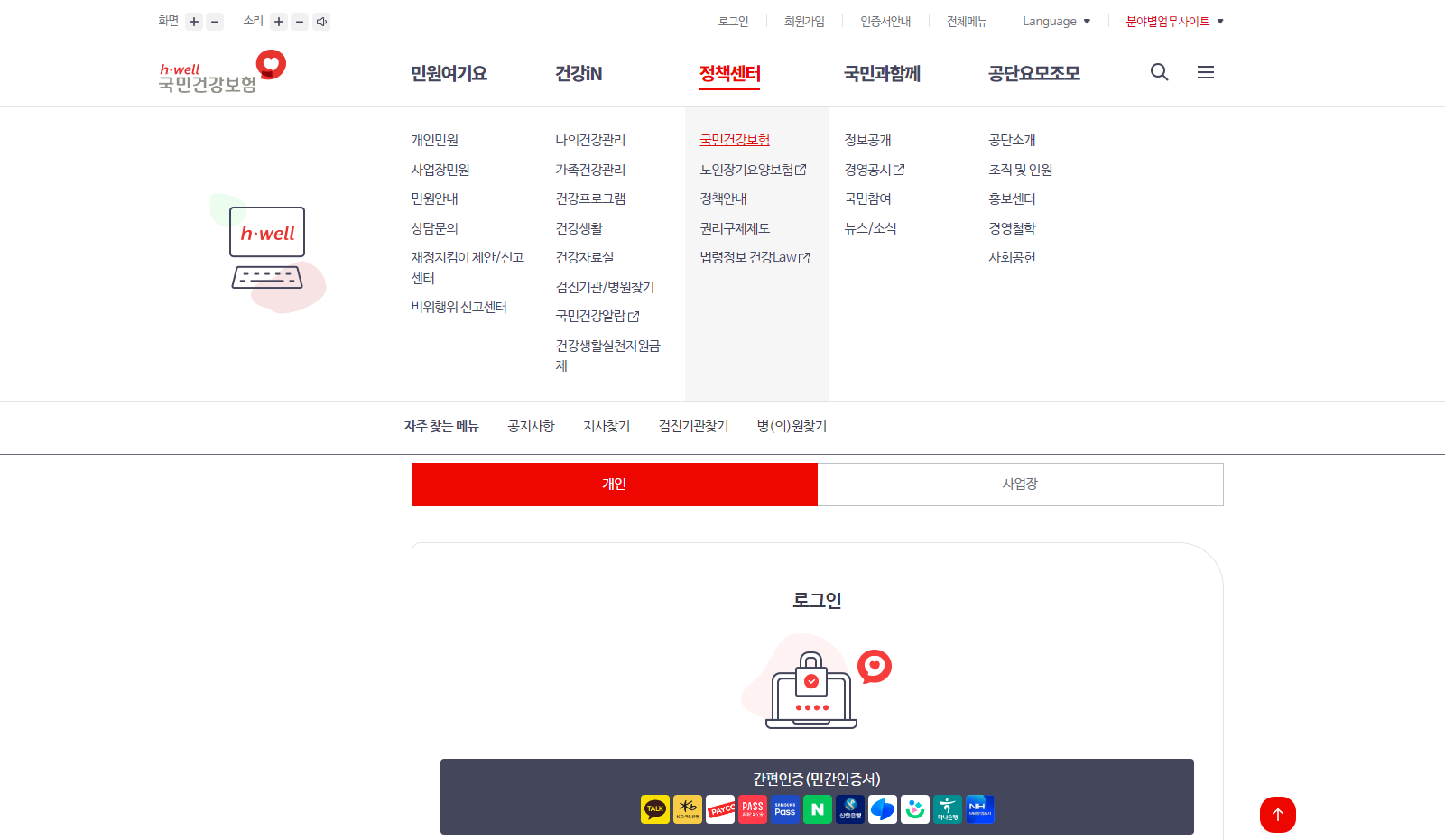 해당 사이트에서 공동인증서, 금융인증서 등으로 본인인증을 하신 후 로그인을 하시면 됩니다.